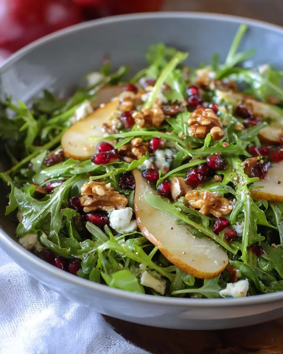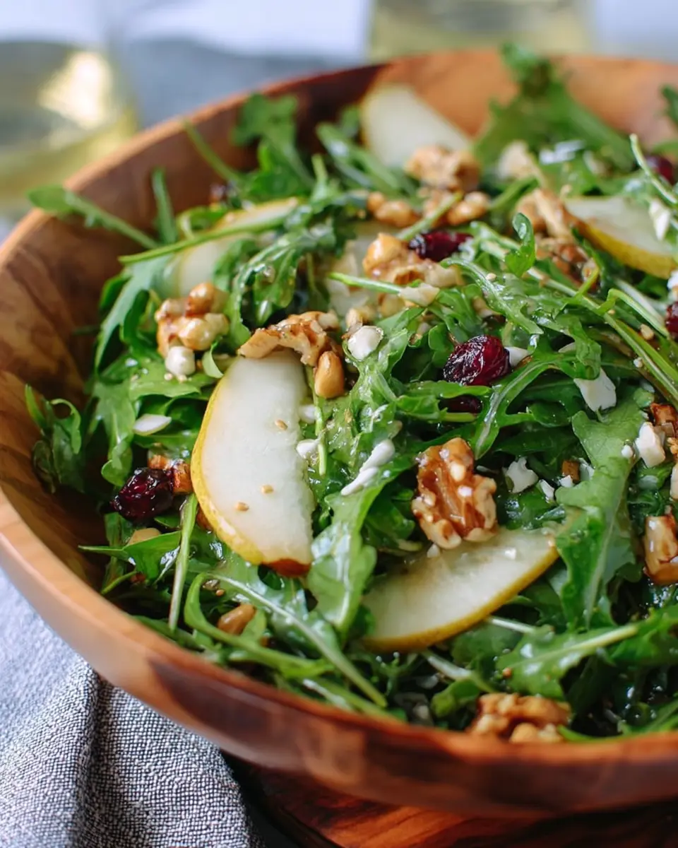 If you’re feeling adventurous, consider adding some optional toppings to take your arugula pear salad to the next level. Crumbled goat cheese or feta could add a lovely creaminess that contrasts with the crisp greens. You might also think about tossing in some sliced avocado for healthy fats or even roasted beets for added earthiness. A sprinkle of fresh herbs like basil or mint can brighten the dish. With these additions, your salad will transform into a vibrant and satisfying entrée!