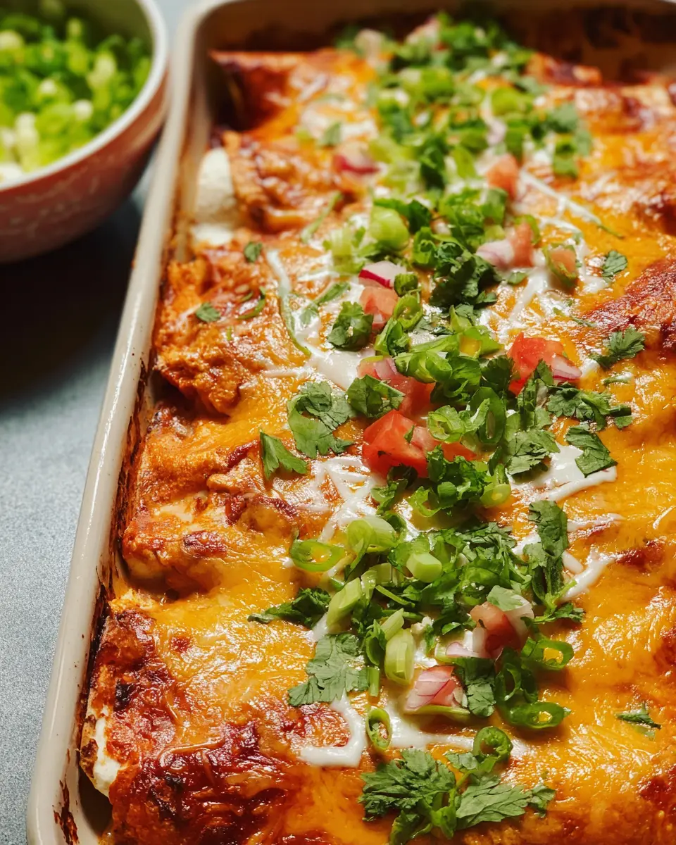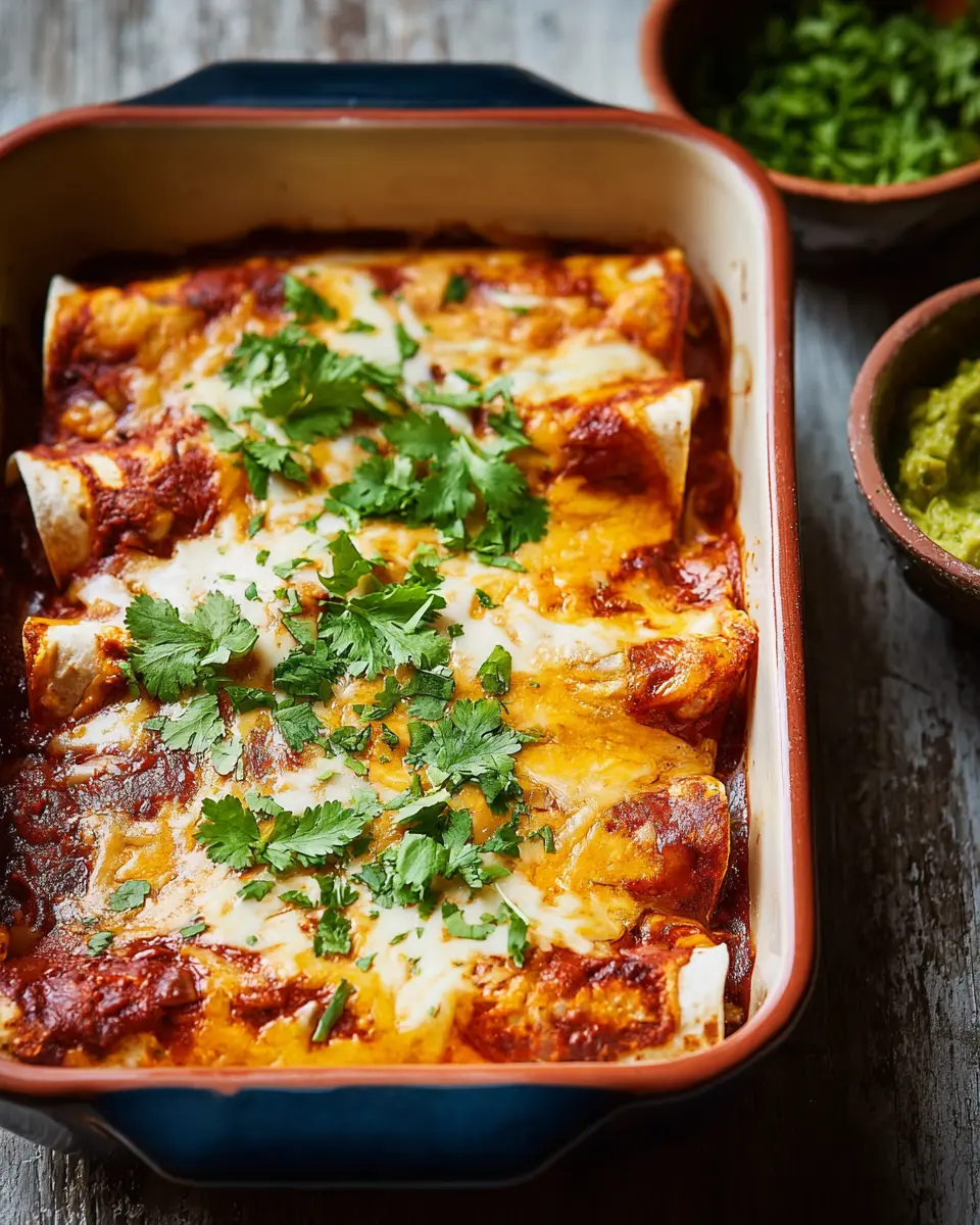 These garnishes not only enhance the dish’s appearance but also elevate its flavor profile. Enjoy these enchiladas any day of the week!