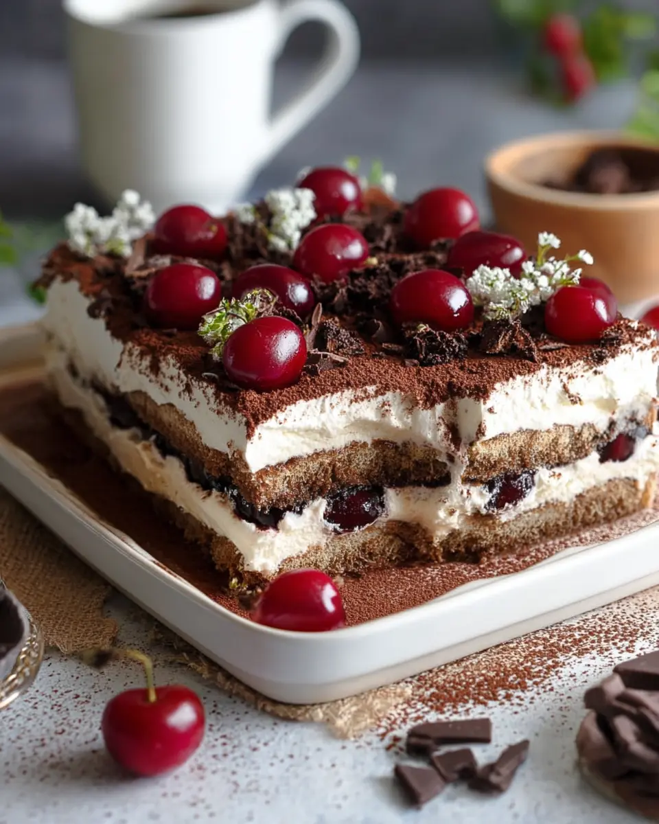 The beauty of this no-bake dessert lies in its versatility. Perfect for warm evenings or festive gatherings, it offers a refreshing twist on the classic tiramisu while embracing the iconic flavors of the Black Forest region. Did you know that cherries are not only delicious but also packed with antioxidants? Pairing them with coffee gives you an energy kick, making this dessert not just indulgent, but also somewhat guilt-free—at least in moderation!