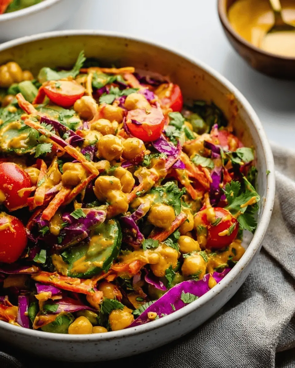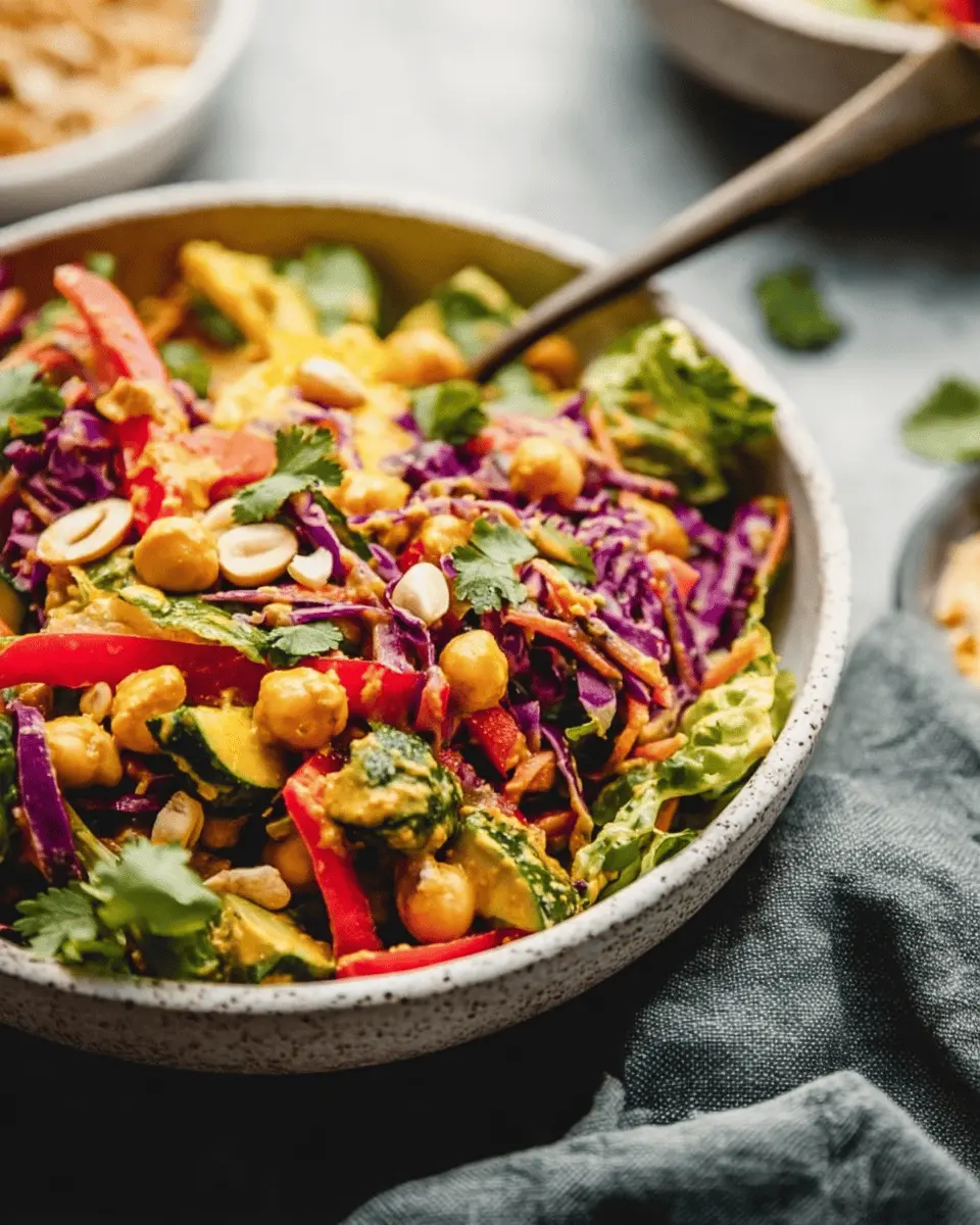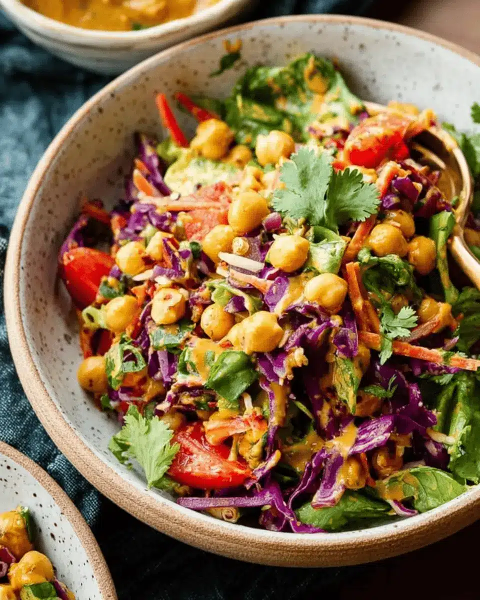 Are you looking for a quick, nutritious meal that satisfies both your taste buds and your busy schedule? Look no further! This Chopped Thai-Inspired Chickpea Salad is not just a feast for the eyes with its vibrant colors; it’s also a powerhouse of flavors, packed with fresh veggies and a creamy, zesty curry peanut dressing.