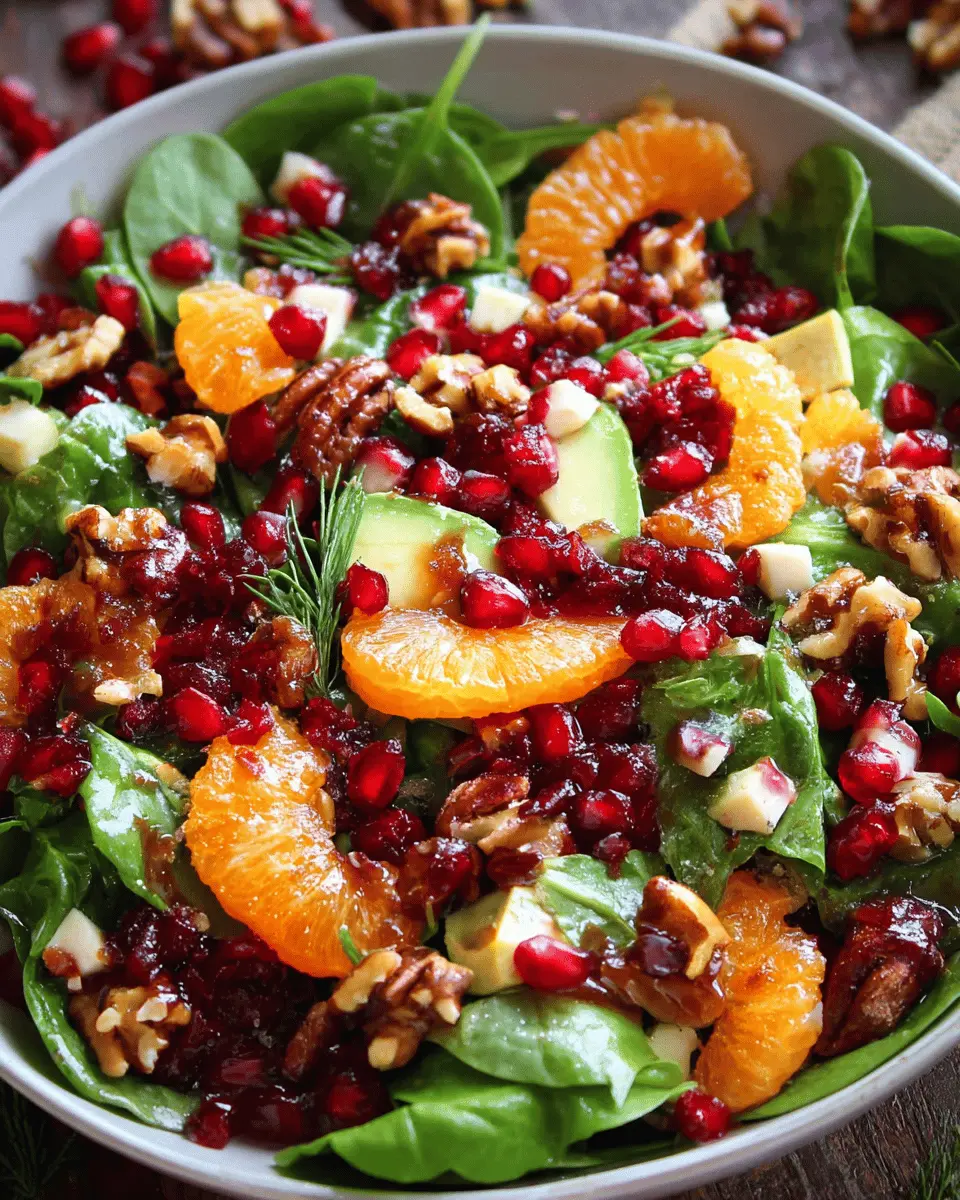 Fresh ingredients can elevate your Christmas Salad to new heights! Look for vibrant, crisp baby spinach and plump mandarin oranges. When choosing pecans, opt for ones that are whole and fragrant; you can also check for pesticide-free options from organic farms to ensure quality. Pomegranate arils should be bright and juicy, as this adds a splash of color and flavor to your festive dish.