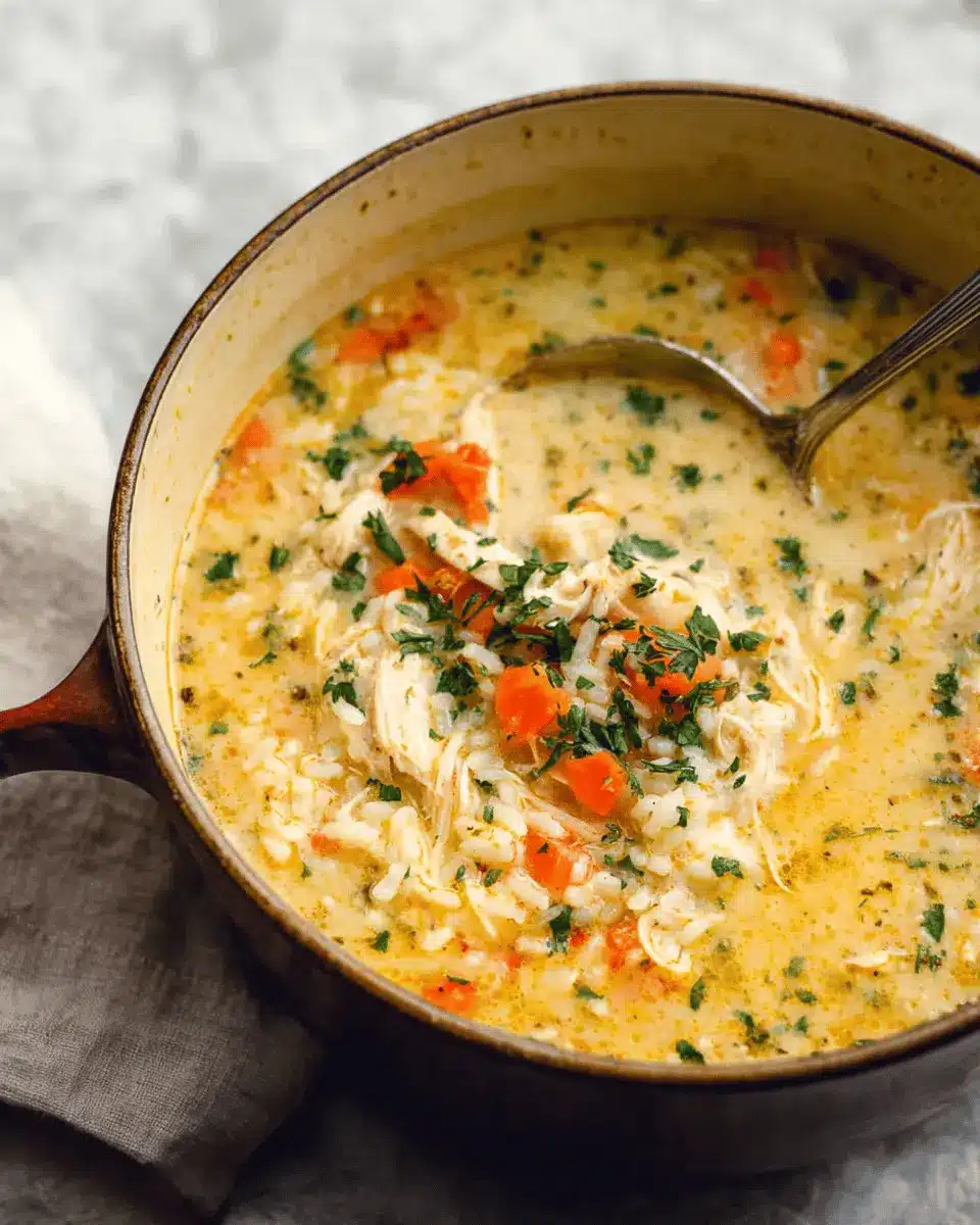 This creamy chicken and rice soup strikes a lovely balance between comfort and nutrition, perfect for days when you need a warm, filling meal!