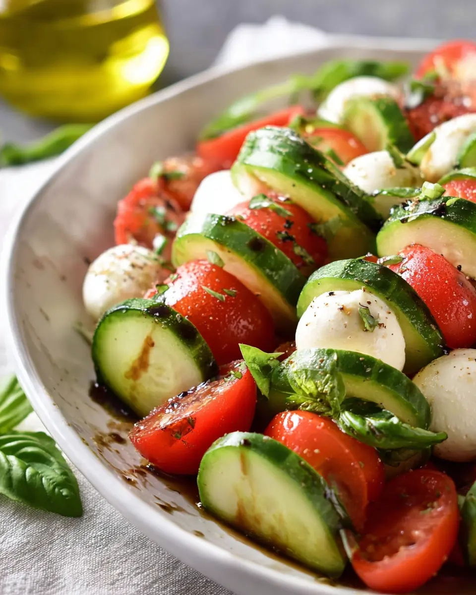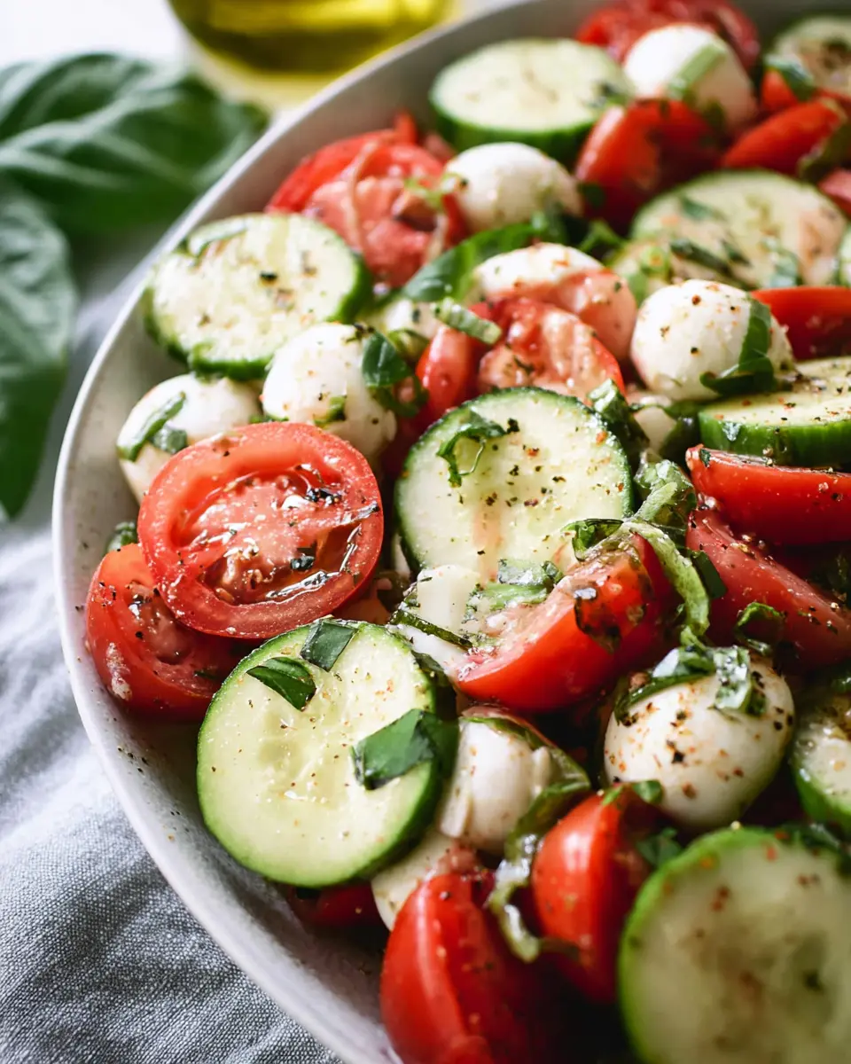 As a young professional balancing work, social life, and personal interests, you know how crucial it is to maintain a healthy diet without compromising on taste. Cucumber Caprese Salad is perfect for you because: