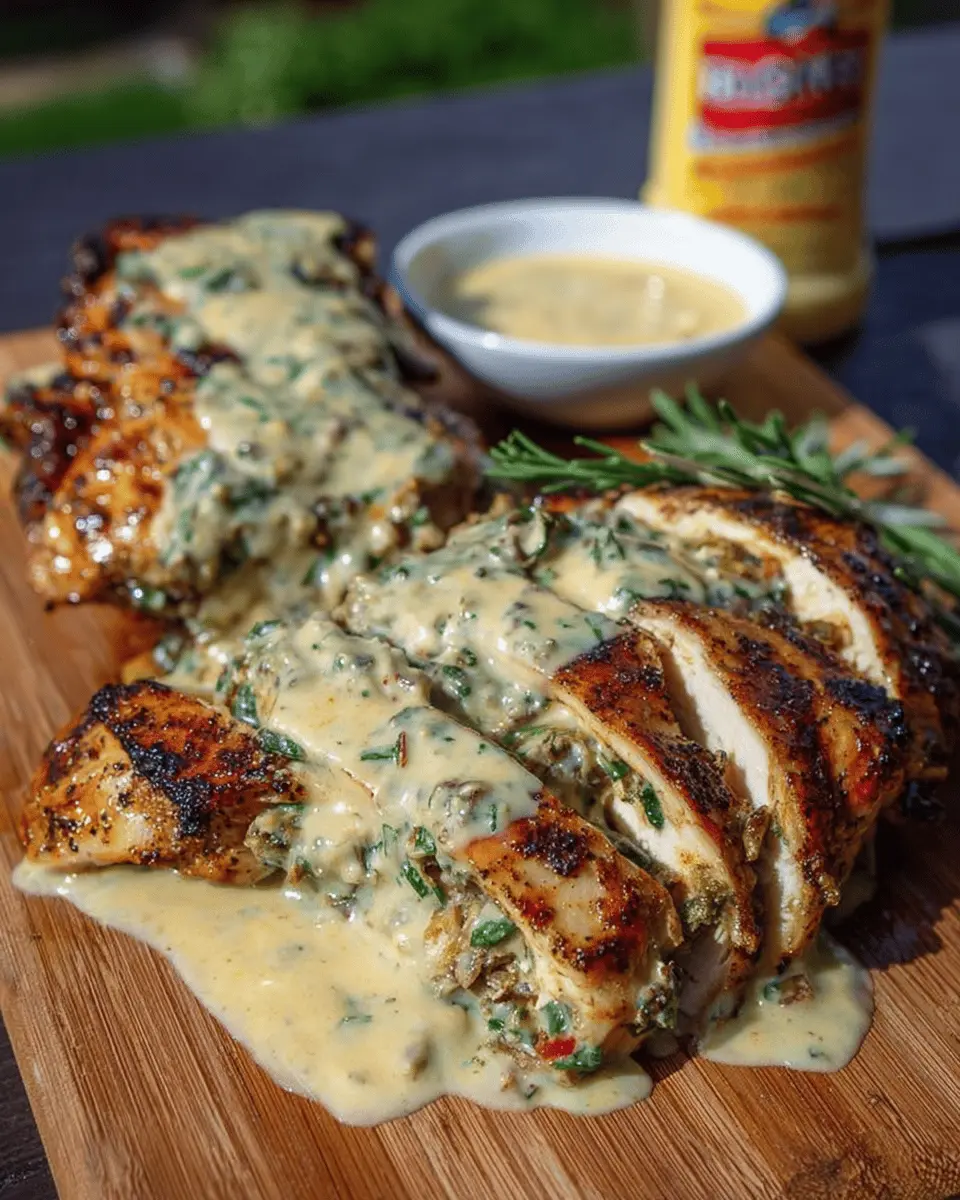 Once your grilled stuffed chicken with cream sauce is ready, serve it up with a drizzle of your luscious sauce on top. Pair it with a side of grilled veggies or a fresh salad for a balanced meal! This combination of juicy chicken, savory stuffing, and a rich cream sauce will surely become a crowd favorite.