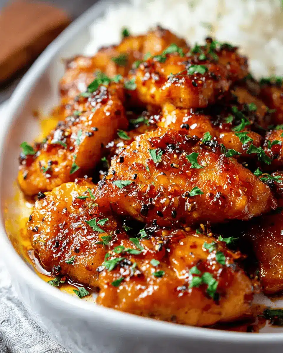 If you’re looking to add a little heat to your honey garlic chicken, you can sprinkle in some extra chili flakes or even toss in sliced fresh chilies while the sauce simmers. For a kick, try a splash of sriracha or a dash of hot sauce – adjust to your spice tolerance!