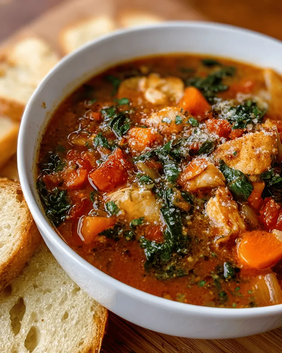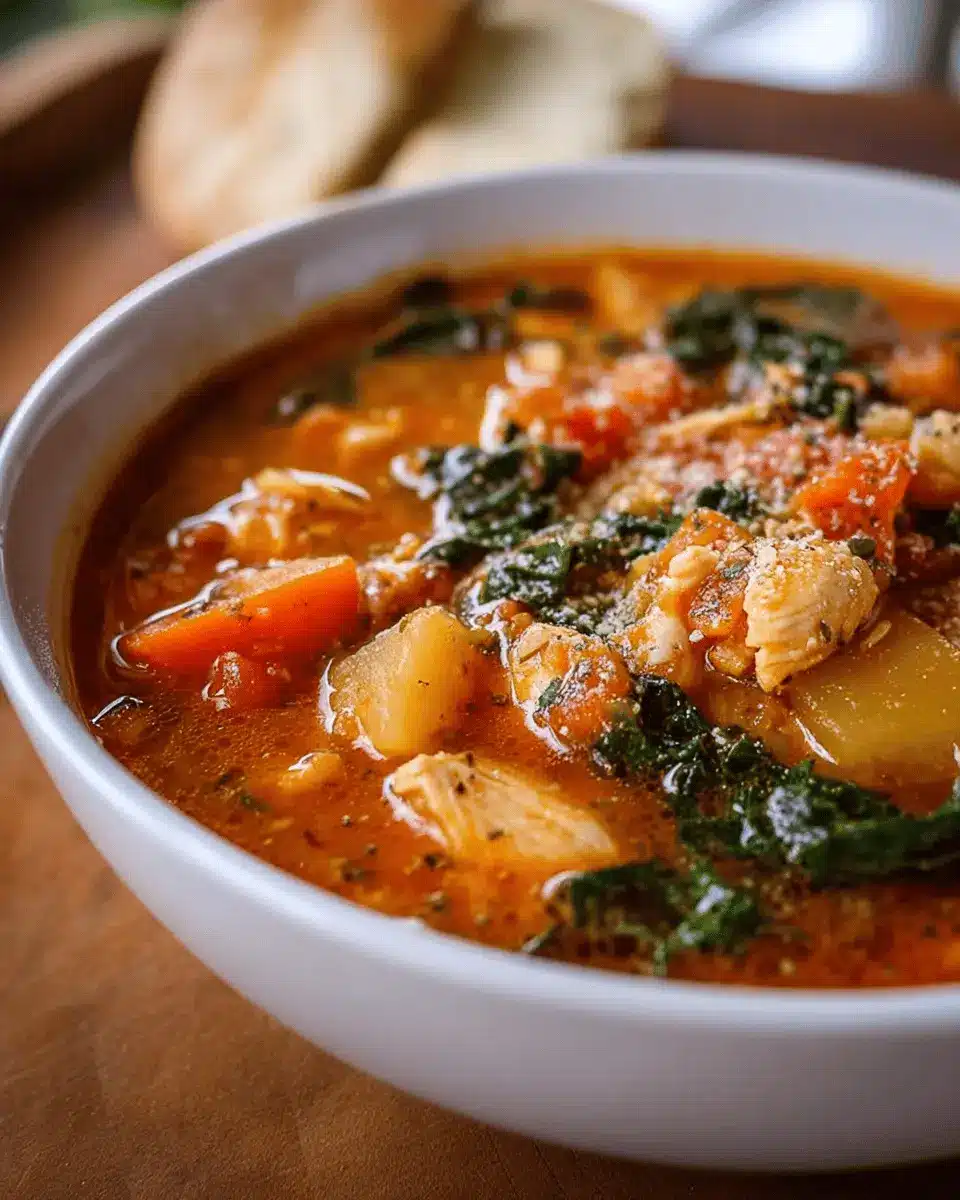 Enhance your Italian Chicken and Autumn Veggie Soup experience by serving it alongside a crusty baguette or buttery garlic bread. These comforting sides are perfect for sopping up the savory broth. Alternatively, a fresh, vibrant salad, perhaps with arugula and cherry tomatoes drizzled with balsamic vinaigrette, can add a refreshing contrast to the rich flavors of the soup. The balance of hearty and light will keep your meal satisfying but not overwhelming.