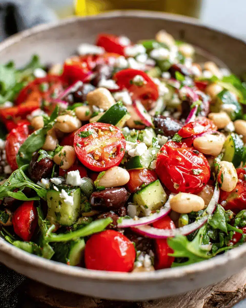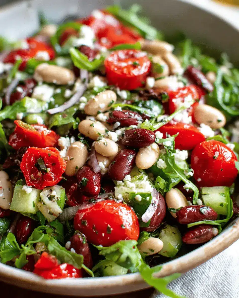 Did you know that incorporating beans into your diet can significantly improve heart health? A study published in the American Journal of Clinical Nutrition found that individuals who consumed beans regularly had lower cholesterol levels. So, not only is this Mediterranean Bean Salad delicious, but it’s also a smart choice for your health! Ready to get started? Check out the full recipe below for a delightful culinary experience.