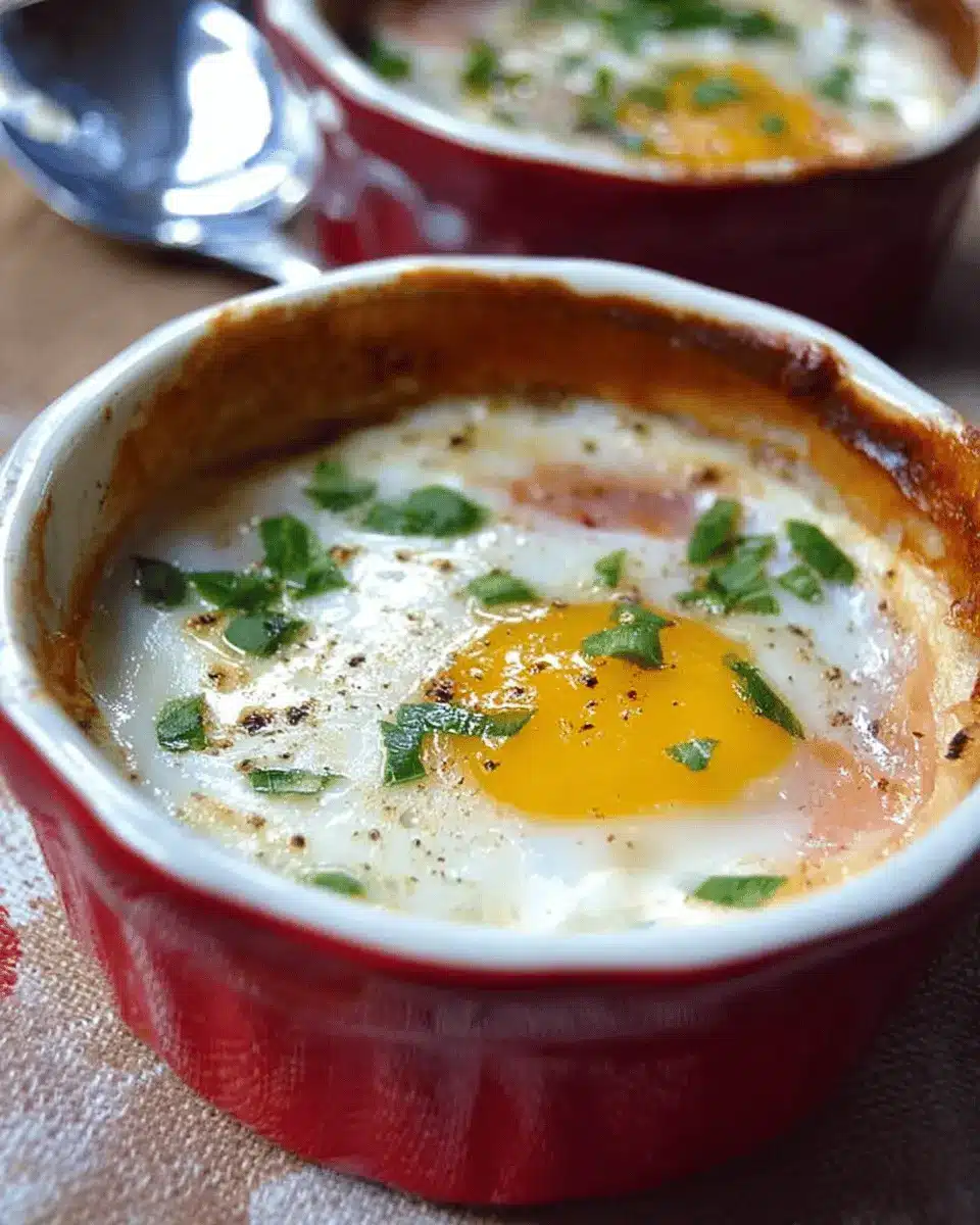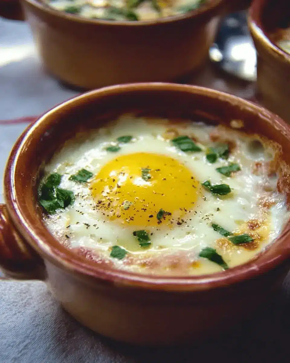 In summary, Oeufs Cocotte is a delightful French dish that brings comfort and elegance to your table. With just a few ingredients, you can create an indulgent meal perfect for brunch or a cozy dinner. Serve hot with crusty bread, and enjoy the delicious runny yolks that elevate each bite. For more culinary inspiration, check out this guide to French cuisine. Happy cooking!