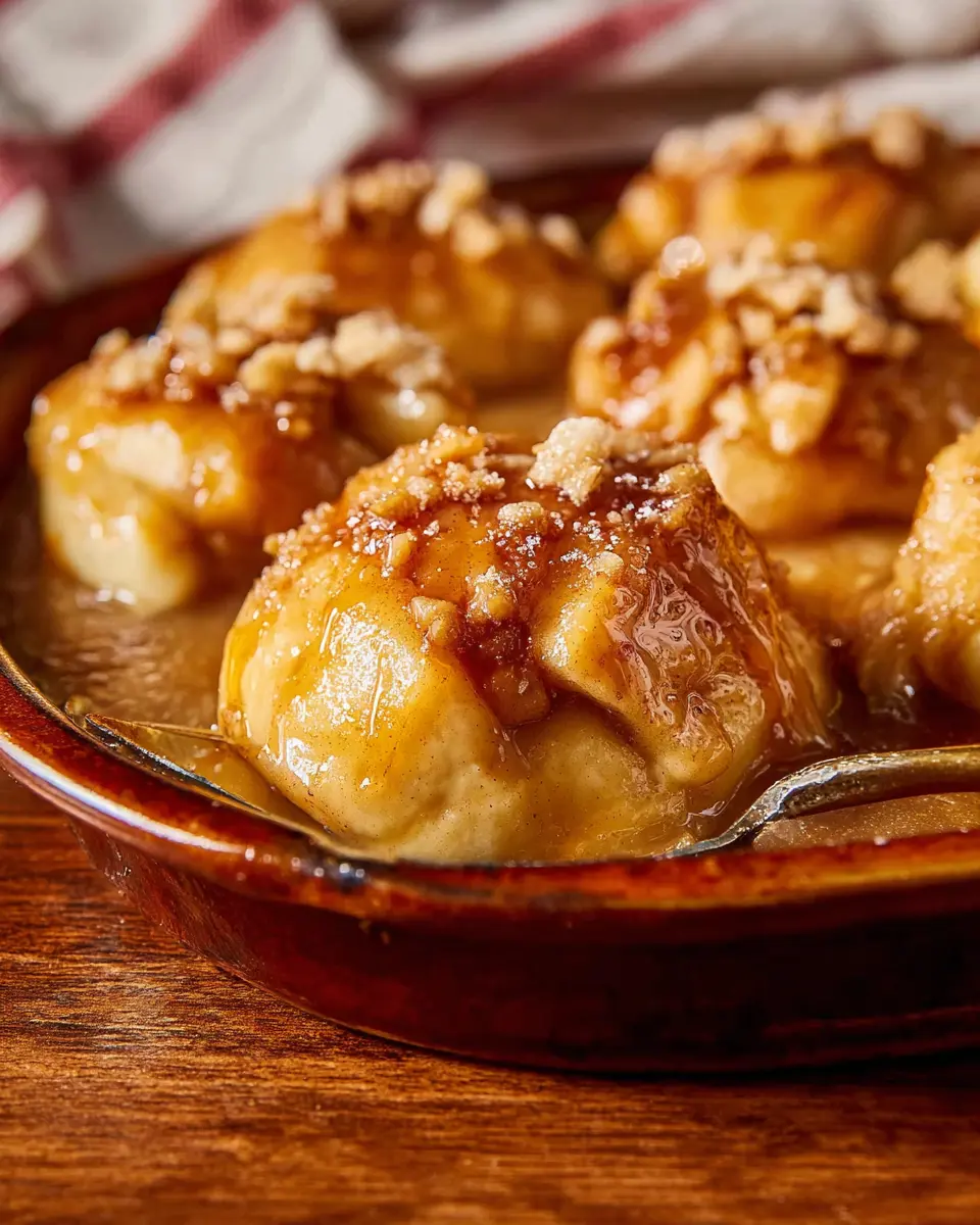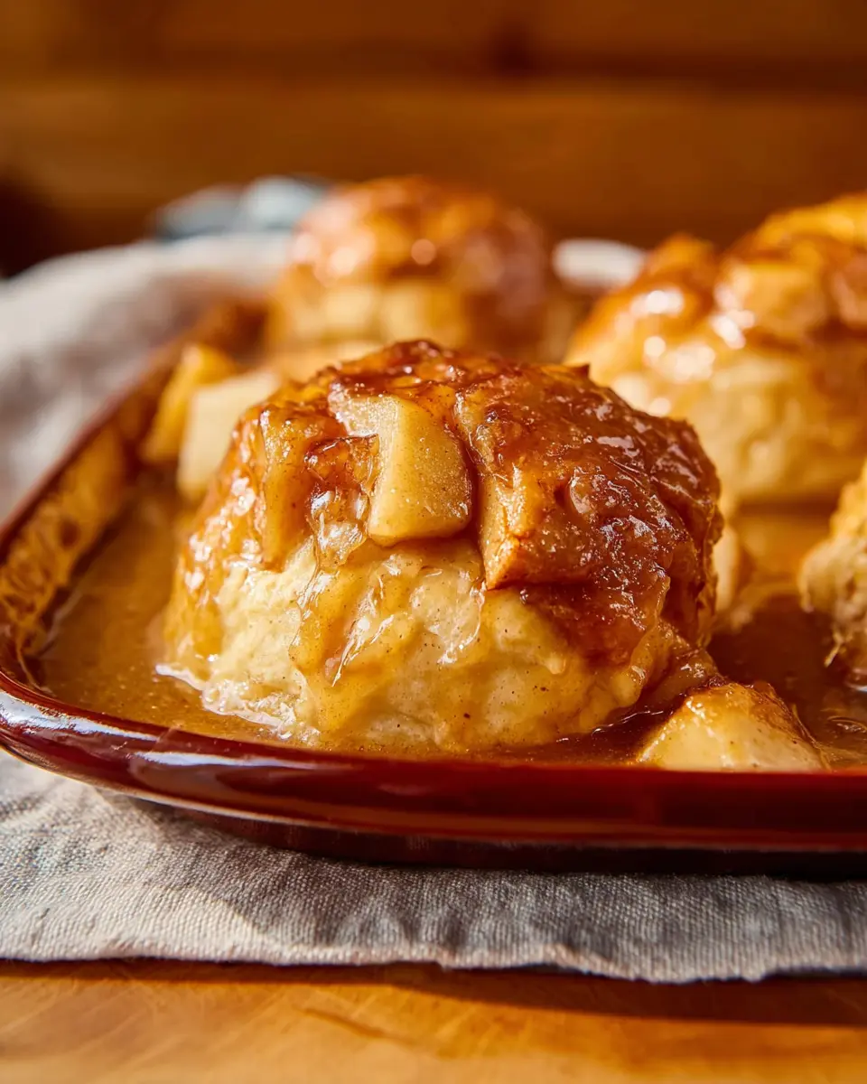 Once baked, serve each old-fashioned apple dumpling warm, drizzled with extra sauce in a lovely dessert bowl. Enjoy this taste of tradition that connects generations!