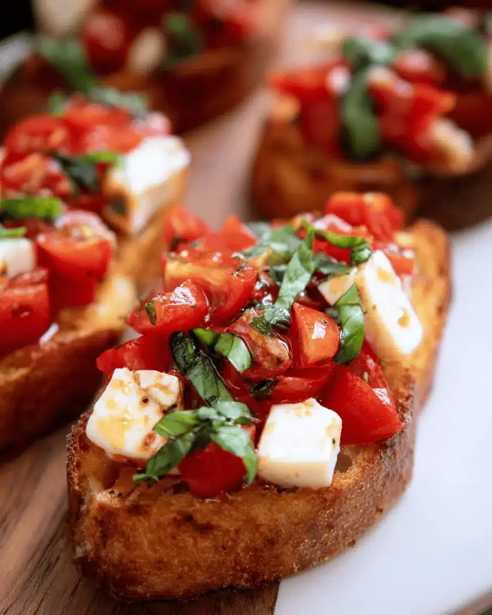 Absolutely! You can prepare the tomato and mozzarella mixture a few hours—or even a day—before serving. Just remember to keep it refrigerated to maintain freshness. For the best flavor, allow it to marinate for at least an hour. However, it’s best to toast the bread right before serving to keep it crispy.