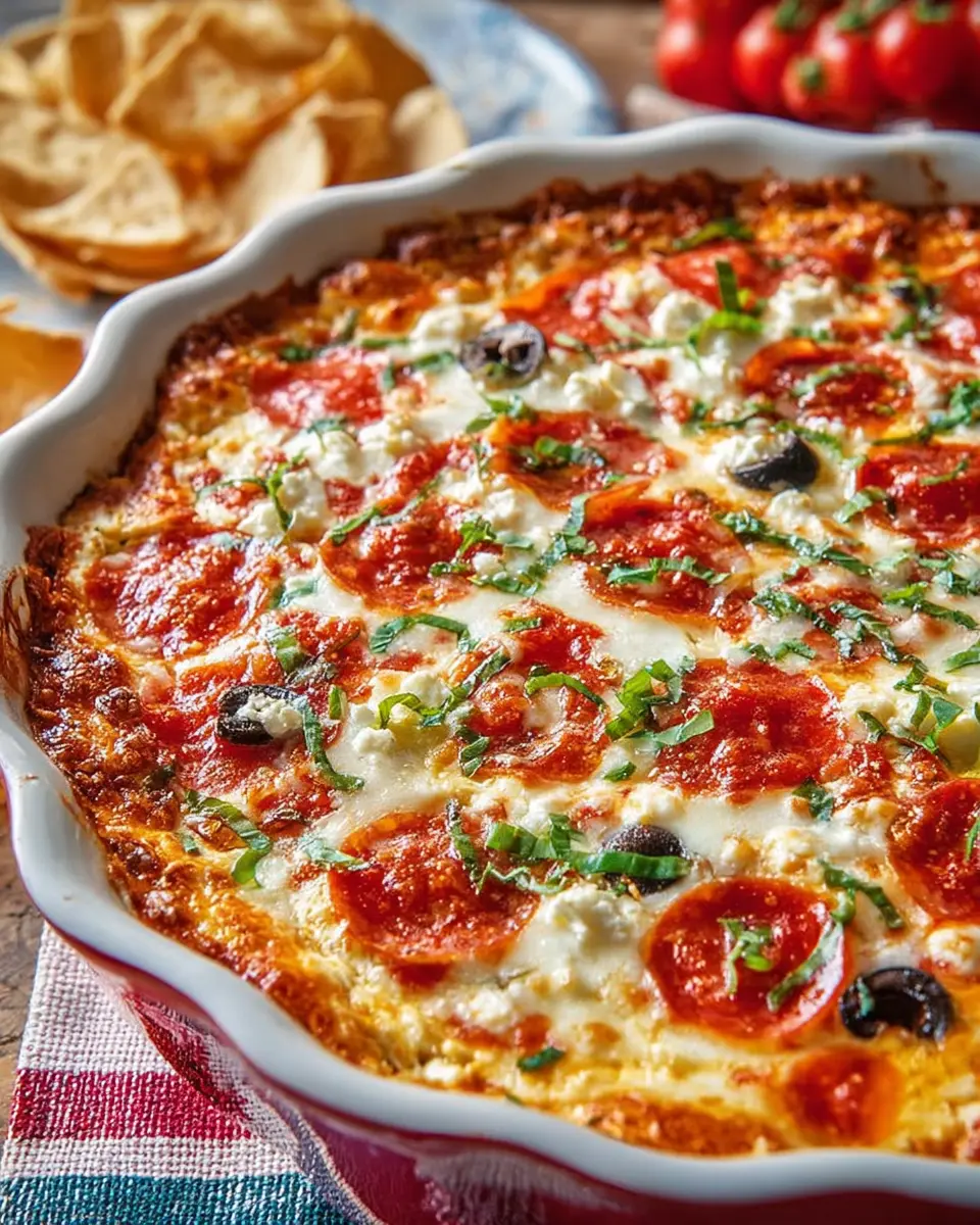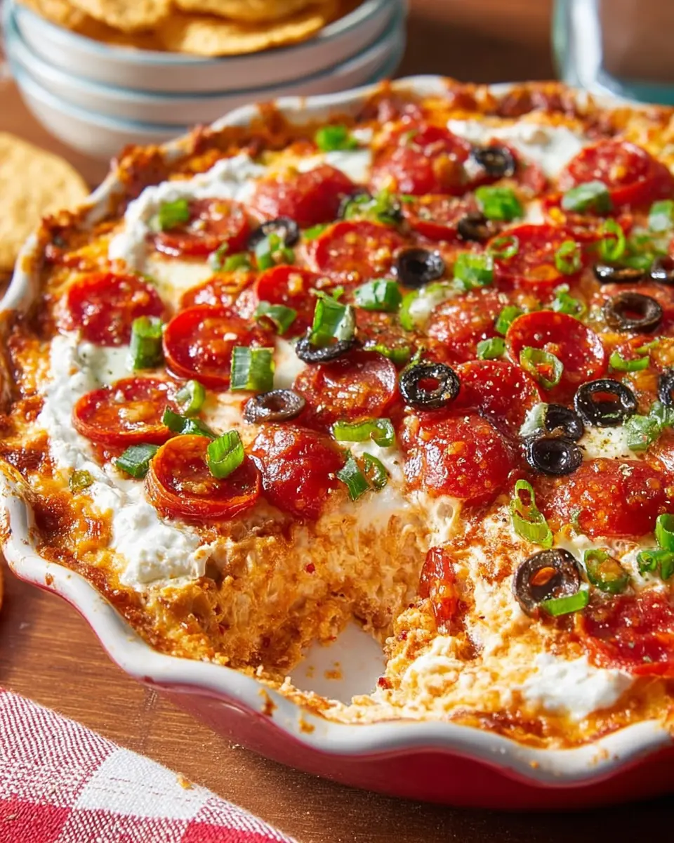 If you’re looking for a deliciously creamy twist on the classic pizza dip, the vegetarian version is a fantastic option. Simply replace the mini pepperoni with your favorite veggies like mushrooms, artichokes, and spinach. Drizzle some extra marinara on top, and use a blend of mozzarella and feta for a tangy kick. This vegetarian pizza dip will be a hit among your friends, whether they’re meat lovers or not!