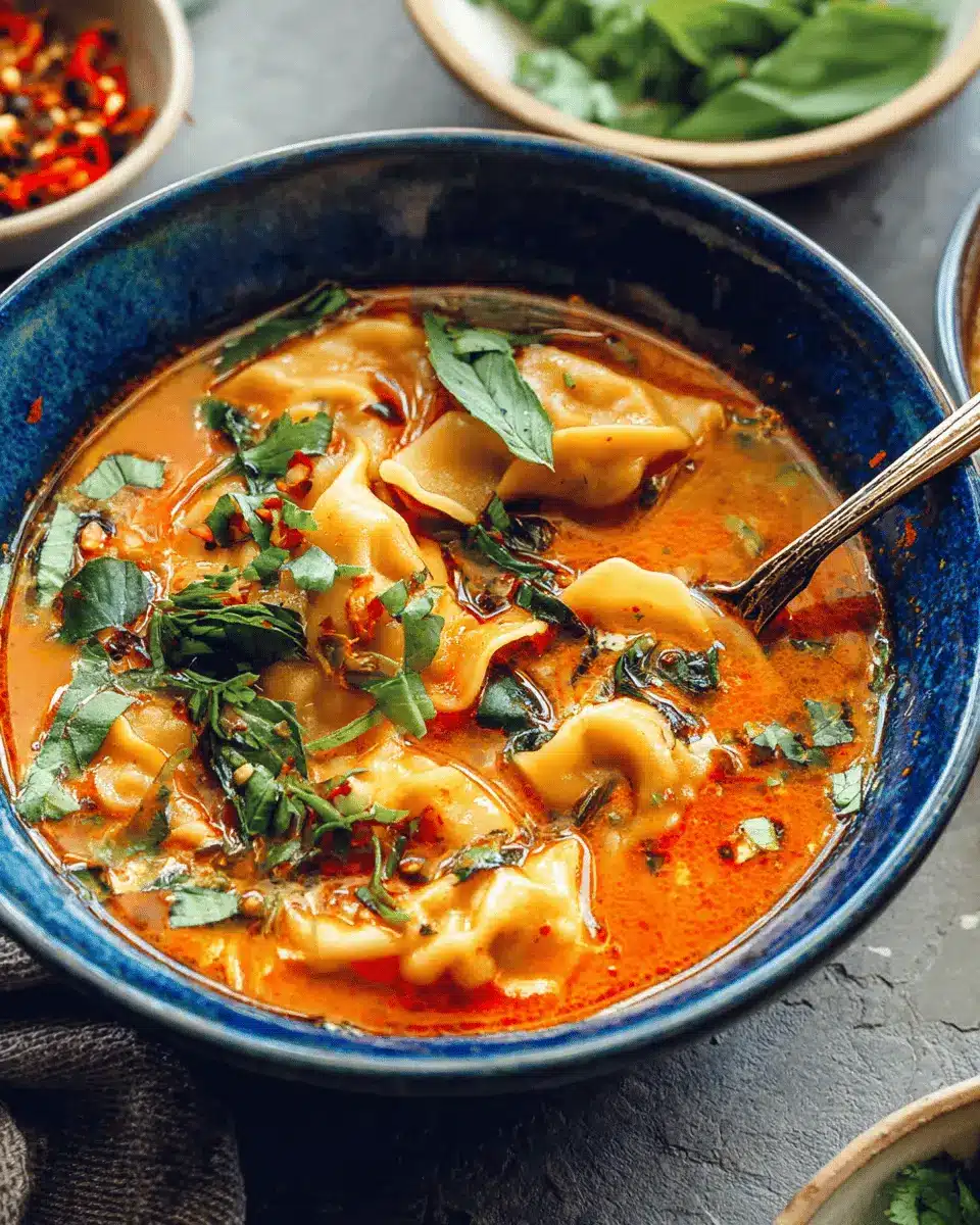 For added garnishes, consider Thai basil, sliced green onion, chopped cilantro, and a drizzle of chili crisp. These little touches can elevate your Red Curry Dumpling Soup into a showstopper!