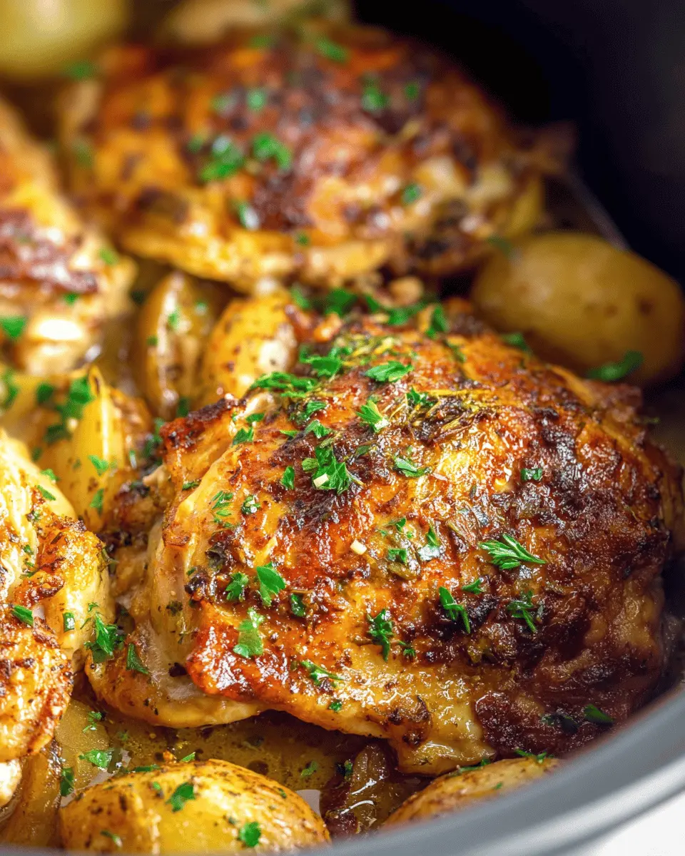 Now comes the fun part—layering! Start by placing the seasoned baby potatoes in the bottom of your slow cooker. Then, add the seared chicken thighs on top. This layering helps create a flavorful cooking environment, with the chicken juices soaking into the potatoes.