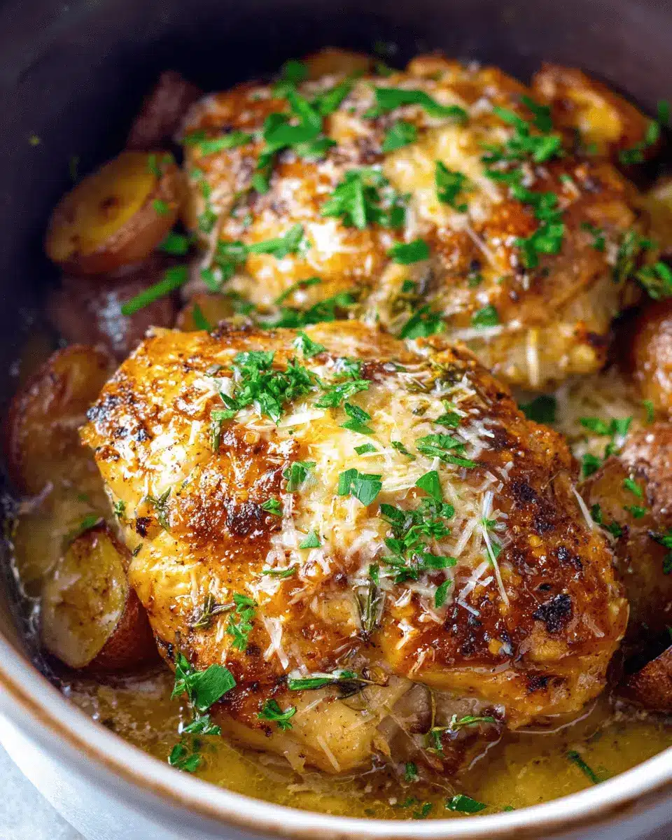 Using the slow cooker not only intensifies the flavors but also ensures that the chicken remains juicy and tender. The combination of garlic, olive oil, and Parmesan creates an irresistible aroma that fills your home—making the wait worthwhile.