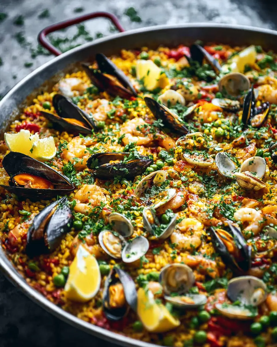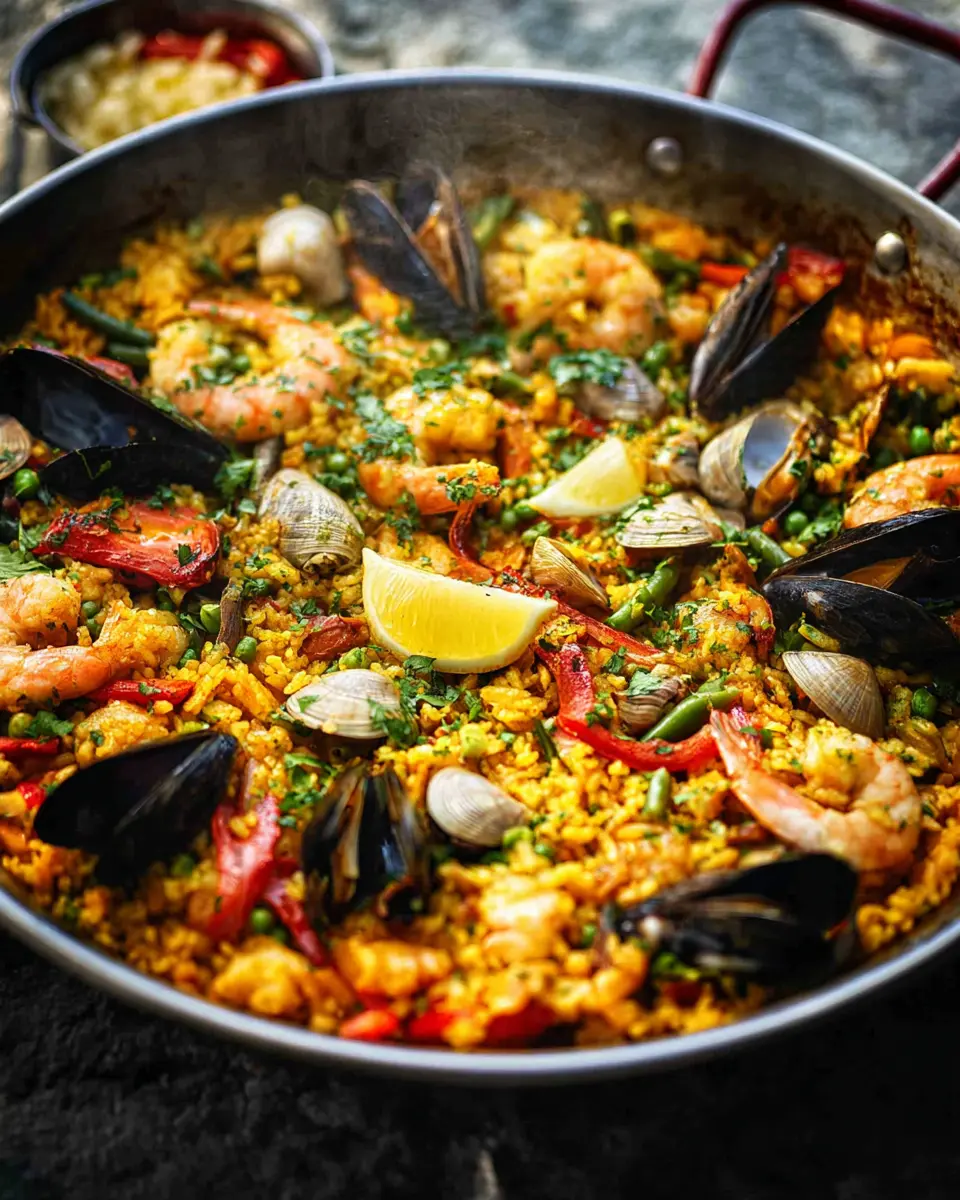 For the seafood enthusiasts, a classic seafood paella is a must-try! Tender shrimp, mussels, and calamari come together with rice infused with saffron, creating a rich and aromatic dish. The combining of fresh seafood with spices is sure to impress your dinner guests. If you're looking for a taste of the coast, this variation is for you!