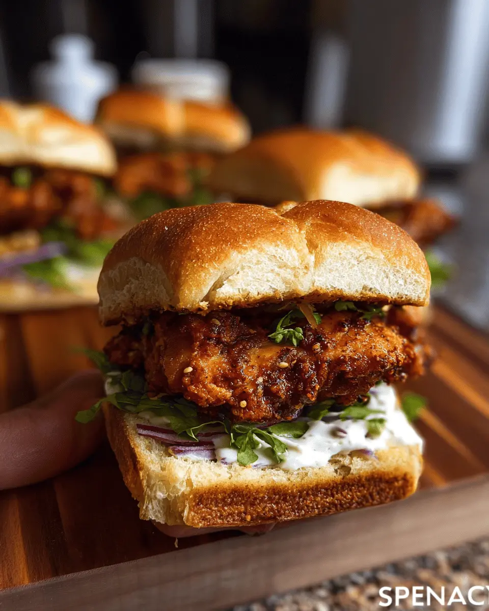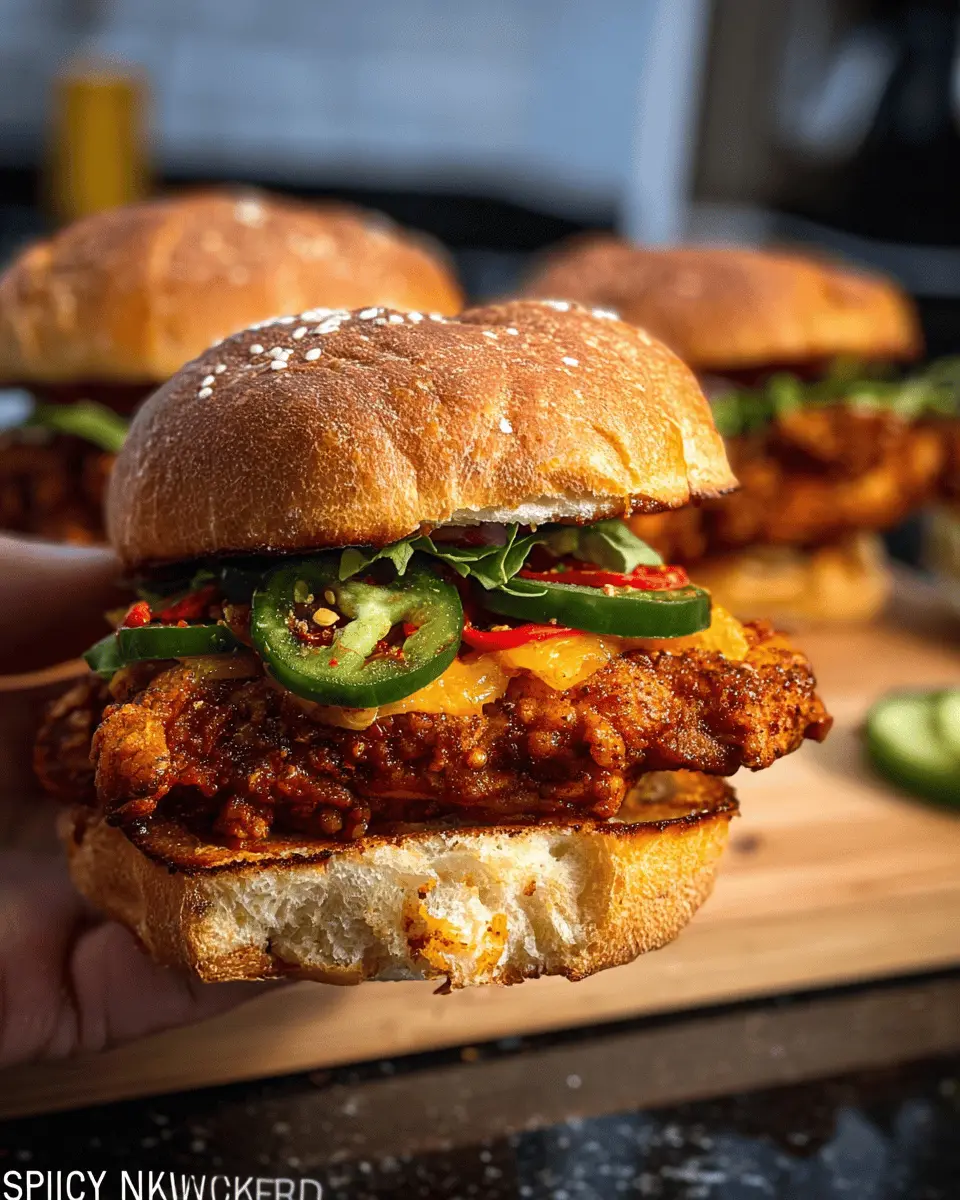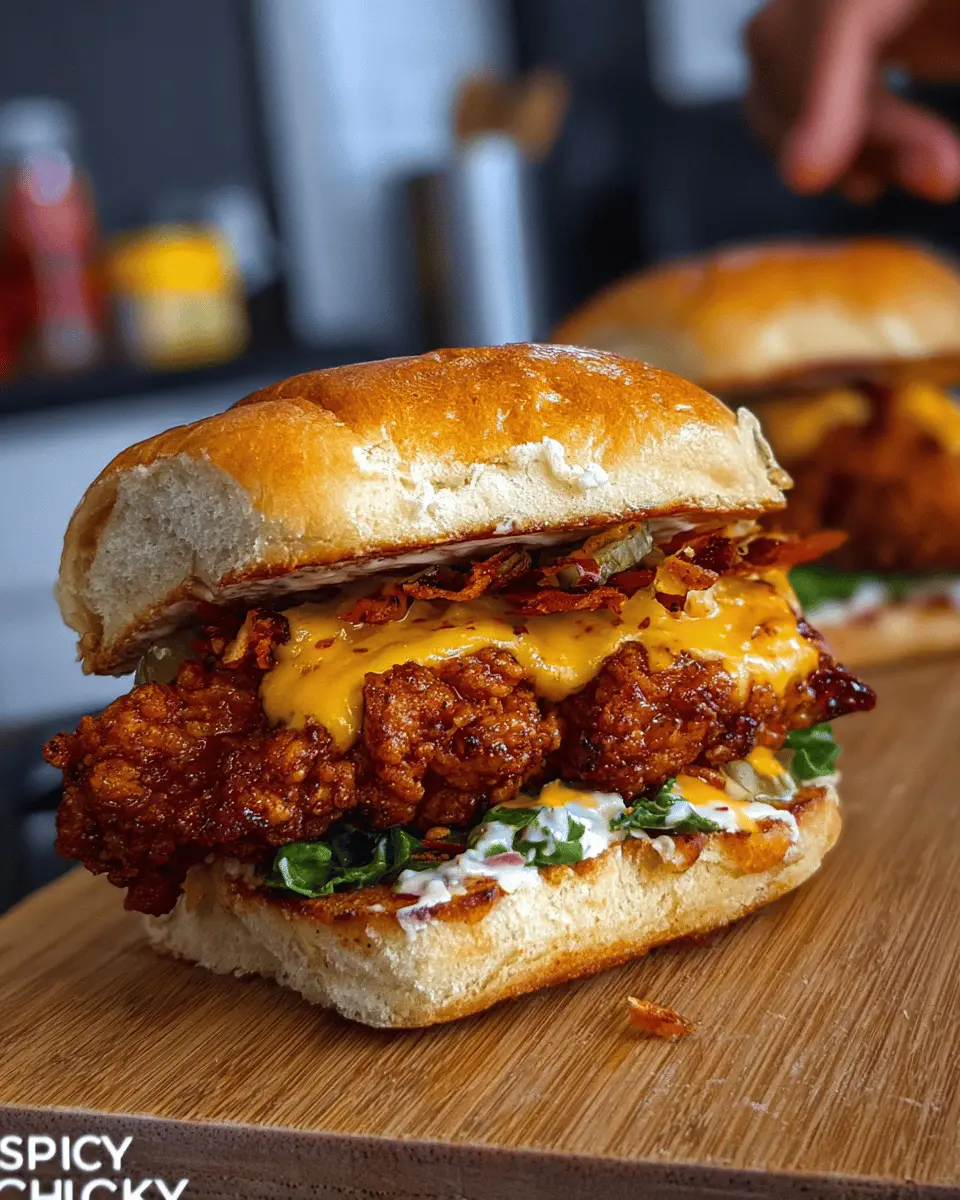 To keep your spicy chicken sandwiches fresh, store the leftovers in an airtight container in the refrigerator for up to 3 days. If you want to retain that crispy texture, consider storing the chicken separately from the bread and toppings. Reheat the chicken in an oven or air fryer for best results—microwaving can make it a bit soggy!