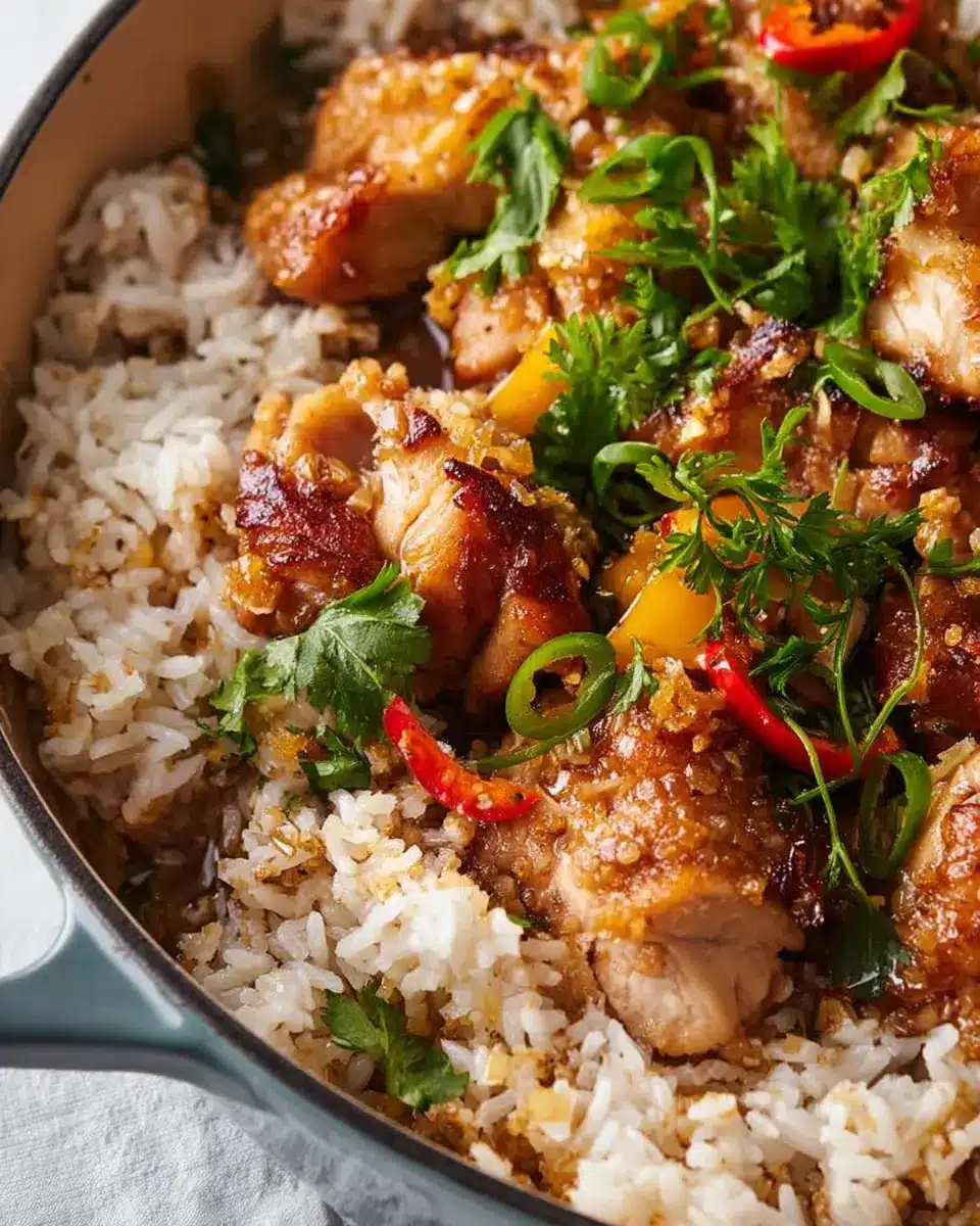 Sticky Coconut Chicken and Rice is naturally gluten-free, making it a great option for those with gluten sensitivities. The use of coconut milk not only enhances flavor but also provides healthy fats. Those watching their sodium intake can opt for low-sodium chicken broth to further tailor the recipe to their dietary needs.