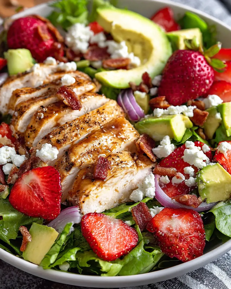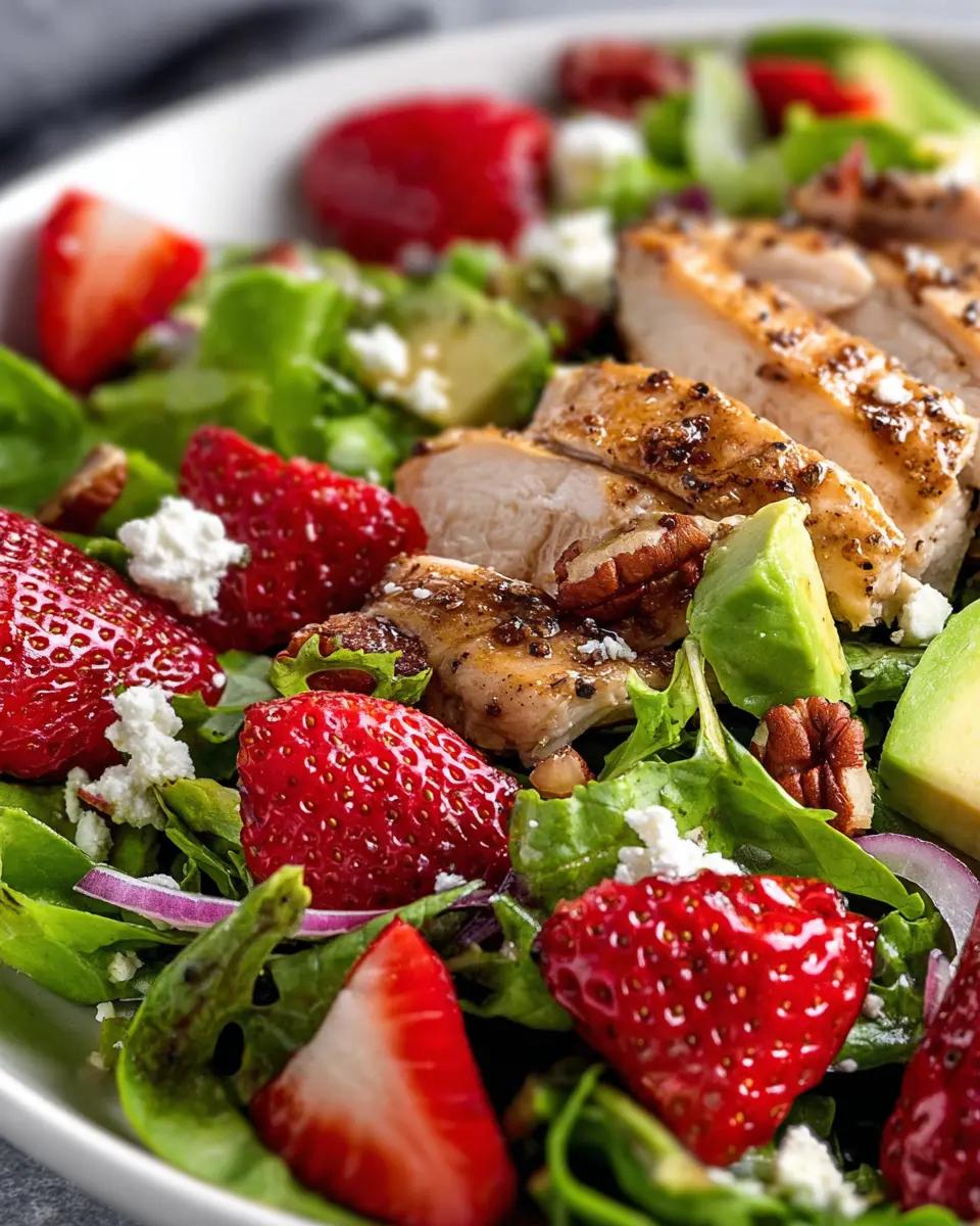 In summary, this strawberry chicken salad is a delicious blend of flavors and textures that embodies the essence of summer dining. Refreshing strawberries, juicy grilled chicken, and a tangy vinaigrette come together for a nourishing meal. Perfect for gatherings or a light lunch, enjoy this salad's versatility today!