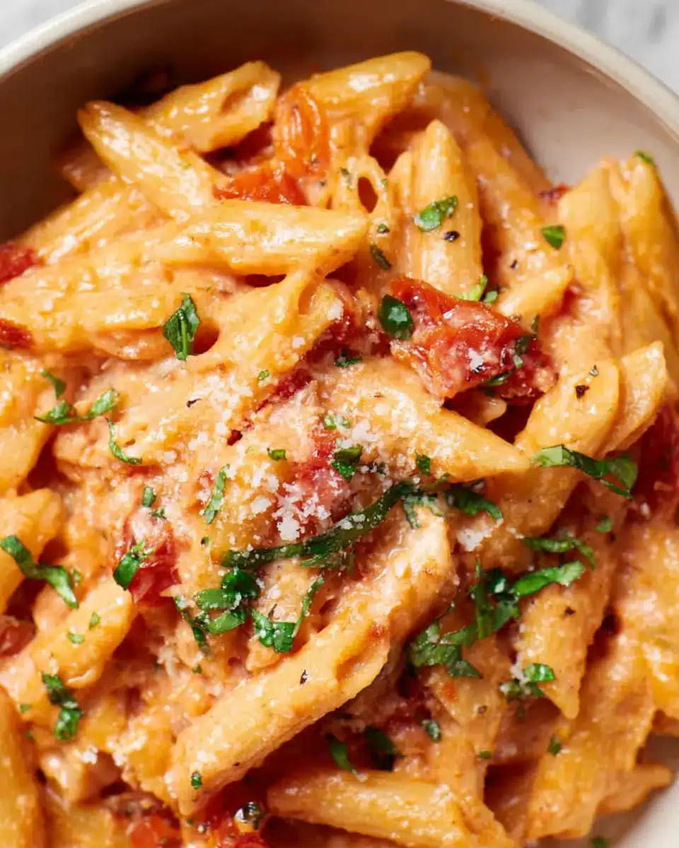 And there you have it! Serve your super easy creamy tomato pasta immediately, garnished with a sprinkle of freshly grated Parmesan cheese. This dish is perfect on its own, or you can pair it with a simple side salad for extra greens. Your weeknight dinner just got a whole lot simpler and tastier—enjoy every creamy bite!