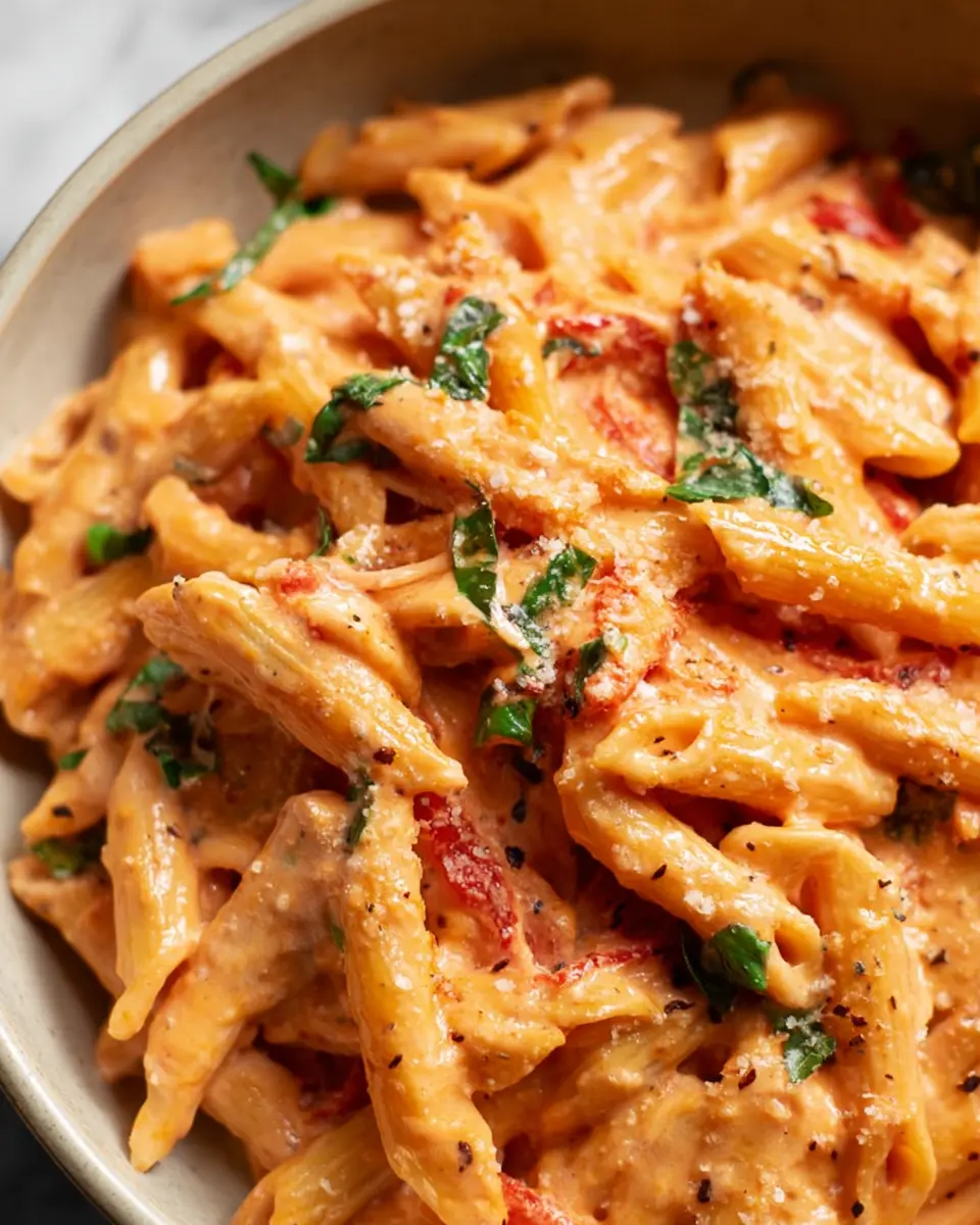 To transform this super easy creamy tomato pasta into a vegan delight, substitute the heavy cream with coconut cream or a cashew cream alternative. You can easily make cashew cream by blending soaked cashews with water until smooth. For a cheesy flavor, consider adding nutritional yeast!